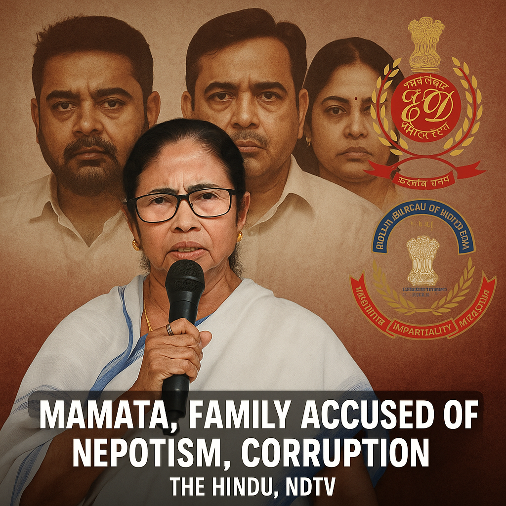 Mamata Banerjee and her family accused of nepotism and corruption, highlighting political controversies in West Bengal. Sources: The Hindu, NDTV.